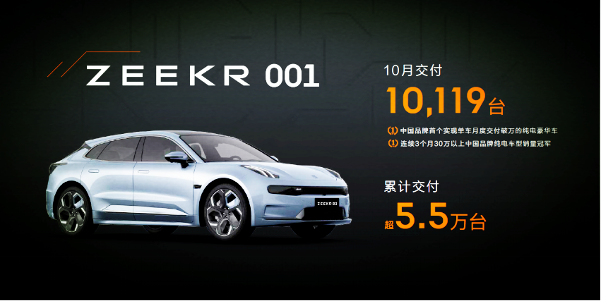 极氪001成为中国品牌首个实现单车月交付破万的纯电豪华车