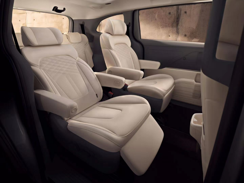 后排的腿部和头部空间也同样出色。其中,第二排腿部空间和头部空间分别长达1128mm和1040mm,奢侈的空间令即使身高180mm以上的乘客也不会感到局促,一般身高的乘客更能感到如沙发大座般的自在。而第三排的腿部空间则达到790mm,头部空间也有977mm,这让无论坐在何处的家庭成员都能感到出行的舒适以及应有的体面。