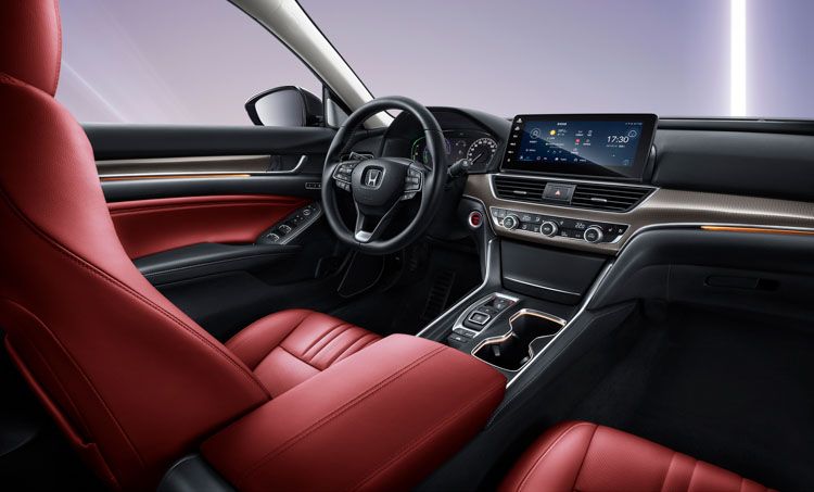 新车共有7种外观色,其中极速绯红、极夜流银为全新外观色,并配备了全新红色动感内饰,此外,为了进一步迎合年轻人对于运动的喜好,新款雅阁新增了幻夜运动套件,进气格栅采用了镀黑三横杠装饰,尺寸也更加硕大,搭配羽翼式LED前大灯及LED流光转向灯。混动版车型还新增了e:HEV专属个性标识,并搭配全新蓝底车标、运动感翼鳍形状设计的排气管等专属设计。