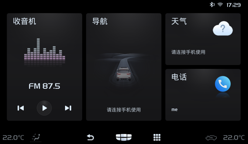 在车机系统方面,远景X3 PRO全系标配了G-LINK 智能车载系统,为用户带来更加智能立体的用车维度。该系统采用了全新卡片式UI布局界面,内置了可实时地图跟随的高德导航以及QQ音乐、喜马拉雅FM等丰富的多媒体影音娱乐系统,支持800项语音指令、3500+语义识别、60+场景对话。在任意界面下,导航、音乐、功能设置、车身控制等模块免唤醒语音控制。通过手机互联后,该系统还可实现WIFI无感连接及8吋大屏全应用投屏,给用户带来更快捷的交互体验。